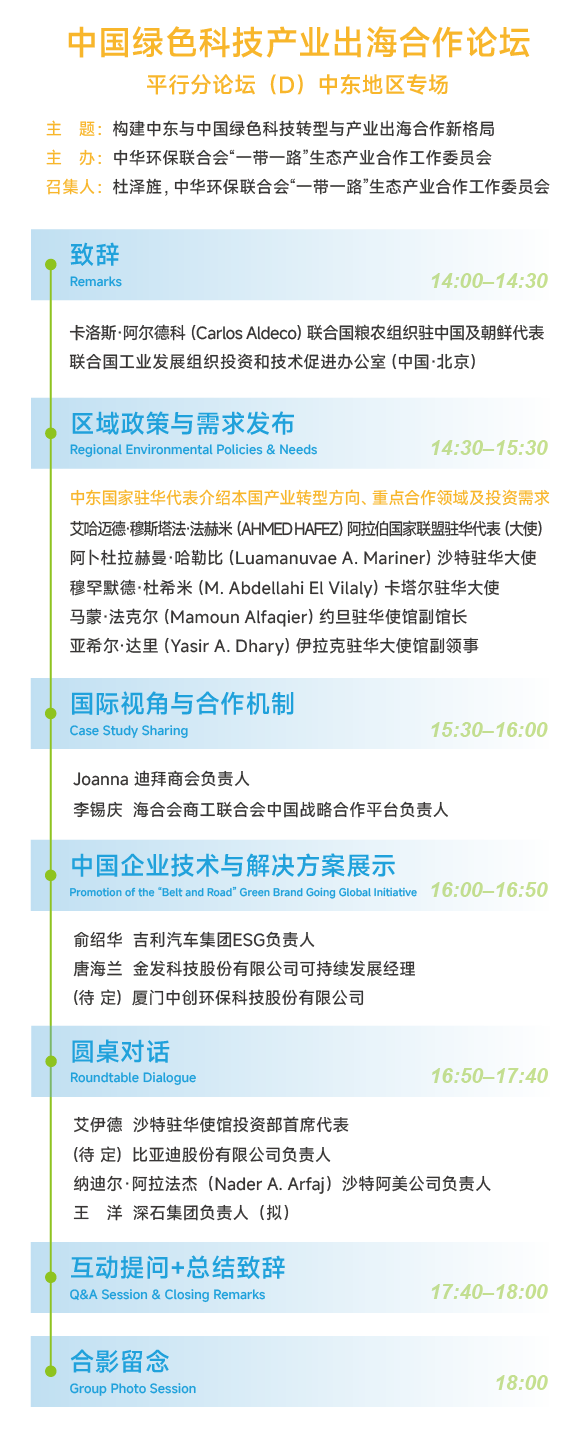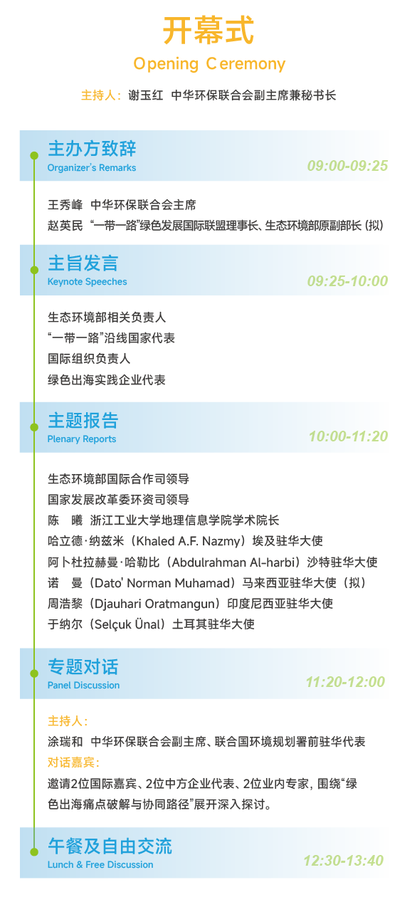 活动将汇聚中外政府代表、国际组织、金融机构及领军企业高层,围绕“一带一路”绿色发展的政策、市场与规则展开对话,帮助企业精准把脉宏观趋势与战略机遇。