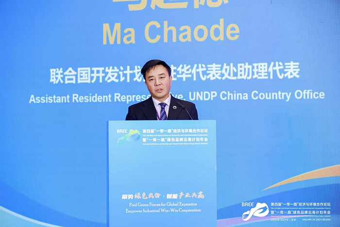 联合国开发计划署驻华代表处助理代表马超德从全球生态环境挑战切入,阐述了生态产品价值实现的重要意义,并分享了UNDP在海南农业生物多样性保护、山东蒙阴县“两山”转化等领域的成功实践案例,为绿色转型提供了路径参考。
